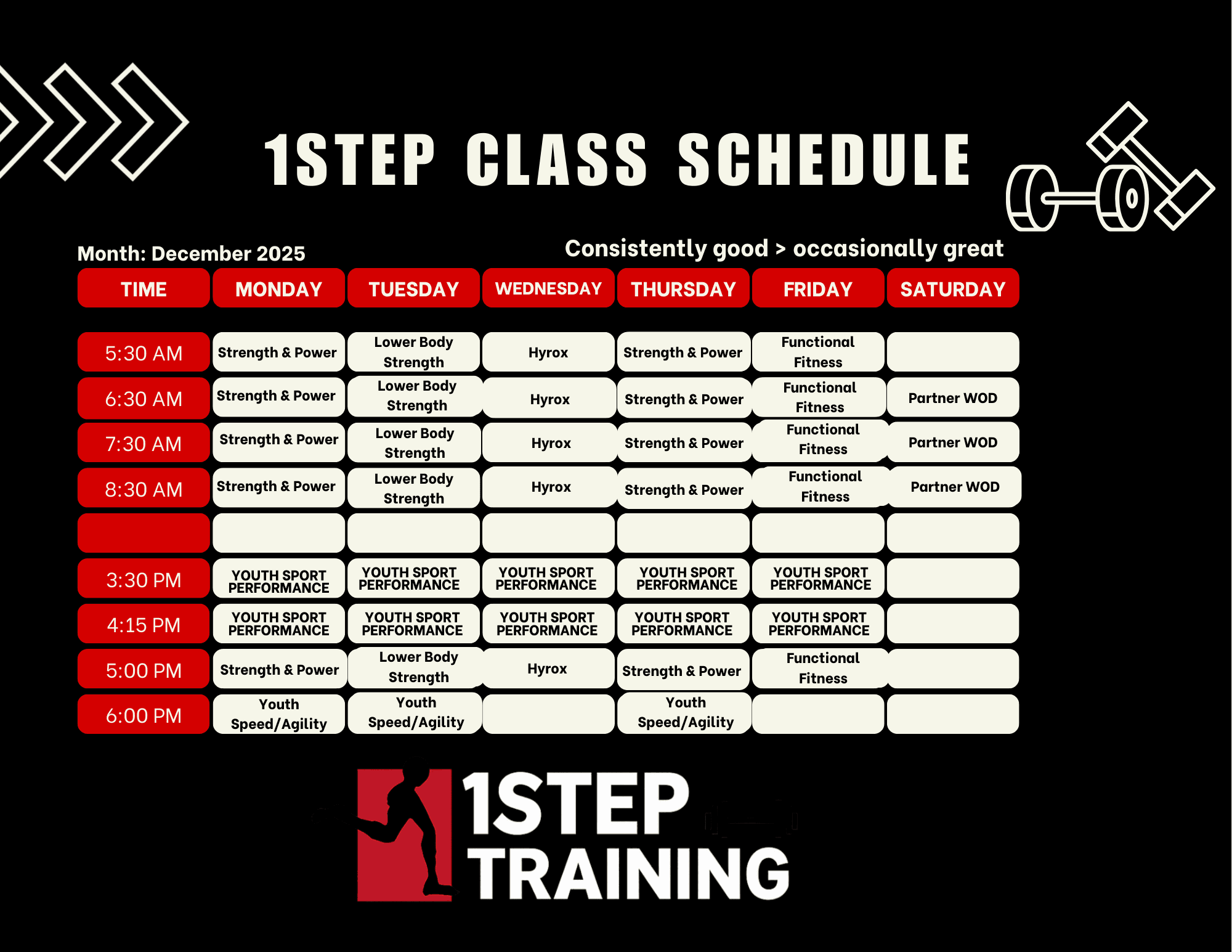 Braden Fitzjerrells is a former collegiate athlete and an Exercise Science/Sports Performance specialist. He has competed in nationally recognized marathons, including the Boston Marathon and Austin Marathon. 1Step Training was born from his long-time vision to create an environment where he could positively impact others and build a community of like-minded individuals who support one another.